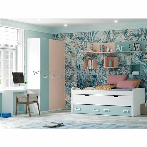 Dormitorio juvenil completo Blanco/Aqua/Rosa Start 03A
